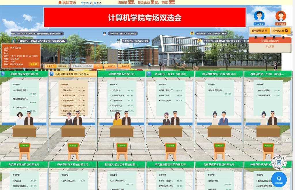 本次网络视频双选会,学院择优筛选参会单位13家, 提供就业岗位4000余个,毕业生累计投出简历400份次,视频面试400人次。