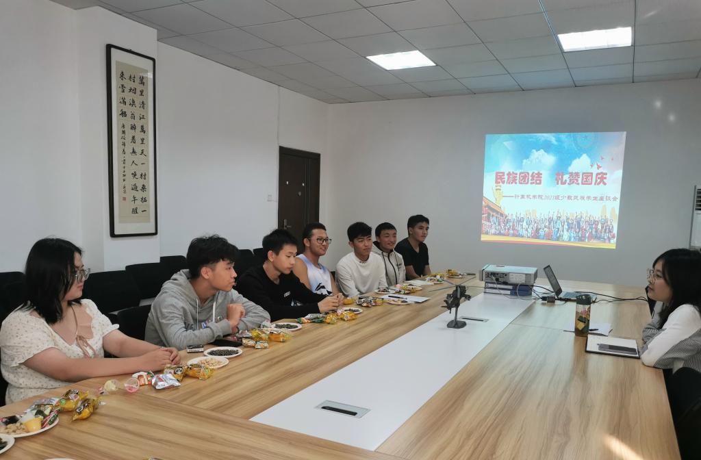民族团结一家亲,同心共筑中国梦。在国庆节来临之际,为促进民族学生团结友爱、勤奋互助,进一步了解少数民族学生在校学习、生活状况,9月30日下午,BB贝博的官方网站在教学北楼216召开“民族团结礼赞国庆”2021级少数民族学生座谈会。2021级少数民族学生参加座谈,会议由2021级学生辅导员张雯静主持。
