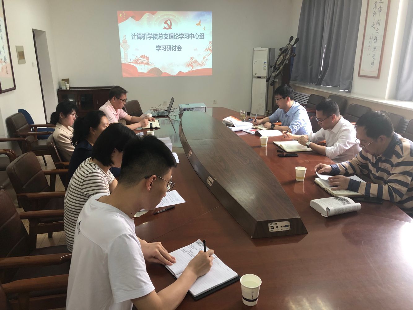 按照BB贝博的官方网站党总支2021年理论学习中心组学习计划,BB贝博的官方网站党总支于5月21日上午10:00在莲湖校区教学北楼319举行了理论学习中心组交流研讨会,主题为 “习近平总书记在党史学习教育动员大会上的重要讲话”和“新民主主义革命时期历史”的学习交流。党总支书记胡红亮主持会议,学校党委宣传部副部长战非到会指导,理论学习中心组全体成员参加。