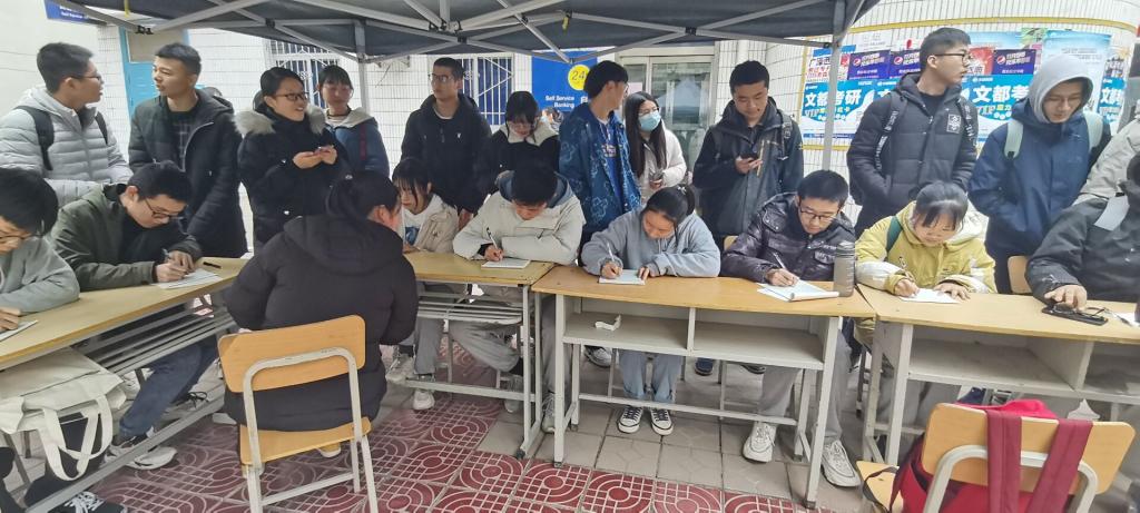 为进一步提升学生的凝聚力,缓解大家考试月的紧张情绪,12月18日,BB贝博的官方网站心理部在食堂门口举办了“写数字”心理趣味小游戏。
