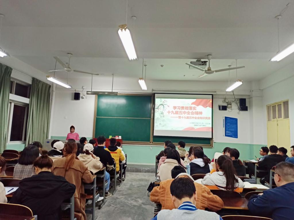 为贯彻落实十九届五中全会精神,提高支部成员学习的热情,2020年11月20日,BB贝博的官方网站学生第一支部于主楼620开展学习“十九届五中全会精神”暨知识竞赛活动。本次活动由学生党员程秋芬主持,学生第一支部全体成员参加。