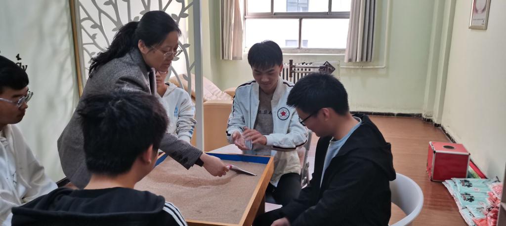 心理咨询中心主任安伯欣老师首先带领同学们参观了心理集中讨论室、心理咨询室,介绍了舒缓音乐治疗的过程,同时也普及了大学生心理健康基本知识和各级心理站点。参观过程中,同学们针对不同心理健康相关知识进行了讨论,大家积极参与、各抒己见。最后,安老师带领同学们体验了沙盘并进行了详细的讲解。至此,本次活动圆满结束。