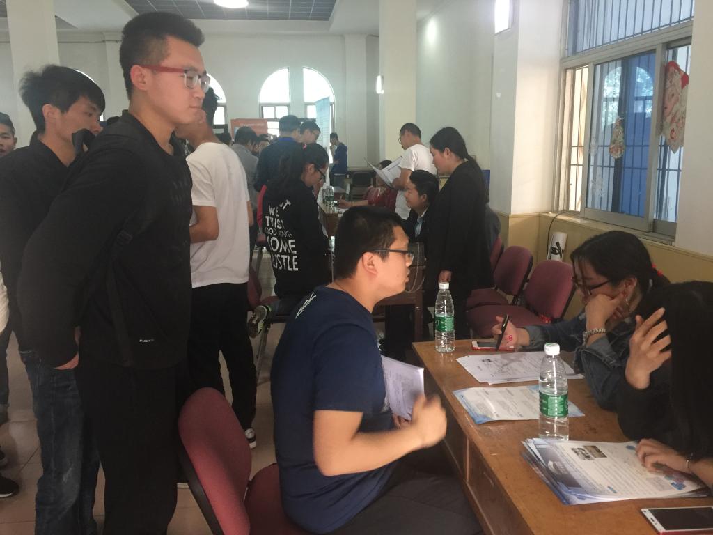 4月10日下午,BB贝博的官方网站在职工活动中心举办专场招聘会。来自陕西比扬通信科技有限公司、北京双星普天科技有限公司、深圳市德卡科技股份有限公司、北京四维图新科技股份有限公司、博彦科技股份有限公司等13家用人单位参加了现场招聘,共为毕业生提供了80余个岗位。
