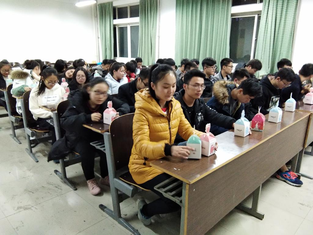 12月25日,BB贝博的官方网站开展了以“感恩”为主题的心理健康教育主题班会。班会由各班心理委员主持,包括心理知识教育、有奖问答和游戏互动等环节,主要以讲述、写纸条、分组讨论等形式进行。