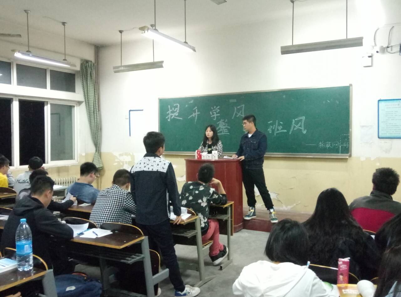 4月20日晚,BB贝博的官方网站组织大一各班召开“提升学风,整顿班风”的主题班会,旨在总结和整顿上课迟到、旷课等学风问题,规范日常行为。
