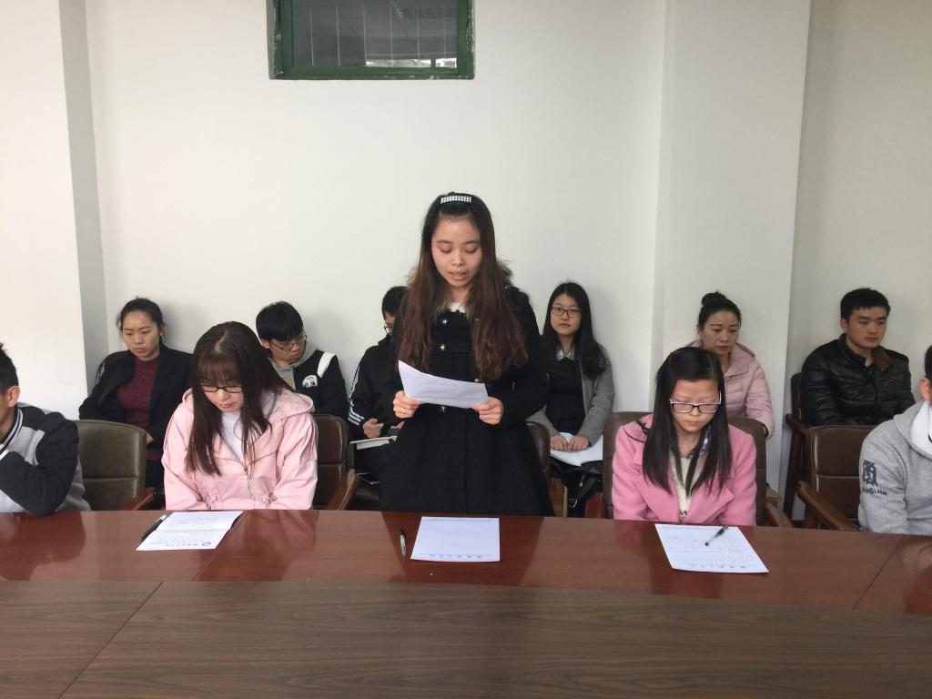 3月17日下午,BB贝博的官方网站学生党支部在北楼三楼会议室召开党员发展大会,会议由学生党支部书记汪芳主持,支部委员和学生党员参加。