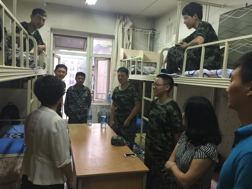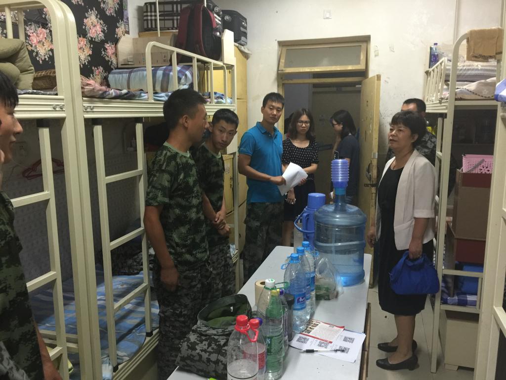 9月14日,BB贝博的官方网站党总支书记刘晋云、学生管理科科长汪芳带领全体辅导员和大一班主任到学生公寓进行走访,在调查新生军训期间生活状况的同时,也给学生带来了中秋节日的问候。
