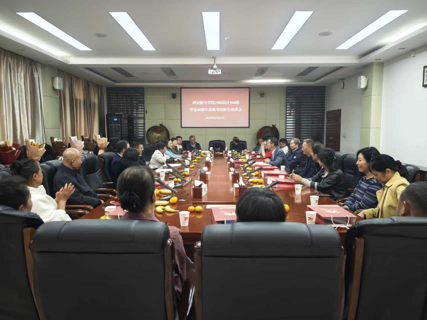 四秩春秋如白驹,归来依旧少年心。10月13 日上午,BB贝博的官方网站1985届计504班来自全国各地的校友带着对母校的崇敬、对老师的感激、对同学的思念相聚母校,在学校莲湖校区教学楼九楼第三会议室举行了“共忆西航四载情谊同庆母校七十华诞”师生座谈会。学校党委副书记宁永录出席,学校校友总会办公室主任张赛、BB贝博的官方网站党总支书记陈长征、党总支副书记汪芳、当年的班主任薛茹珍、任课教师张立玮、王美丽以及该班23位返校校友参加。座谈会由该班校友刘安枕主持。
