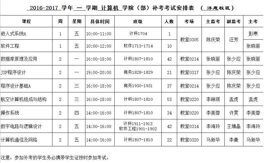 2016-2017-2学期BB贝博的官方网站补考安排表