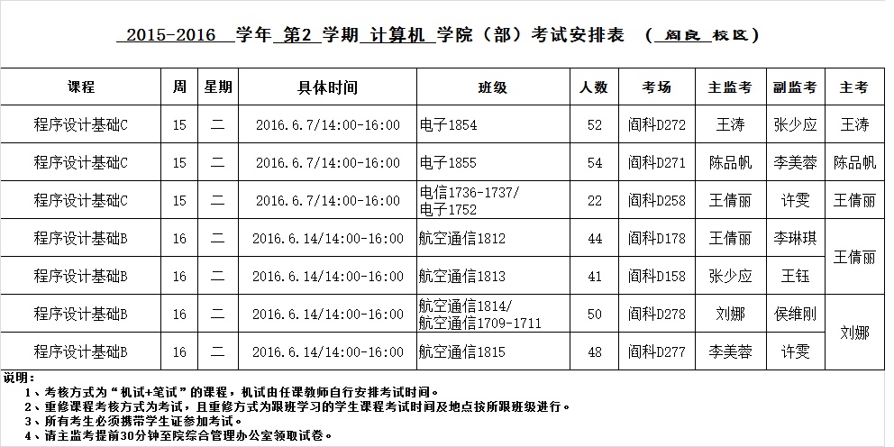 BB贝博的官方网站2015-2016-2学期考试安排(阎良校区)