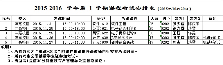BB贝博的官方网站2015-2016-1学期考试安排(一)