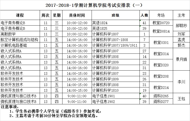 2017-2018-1学期BB贝博的官方网站考试安排(一)