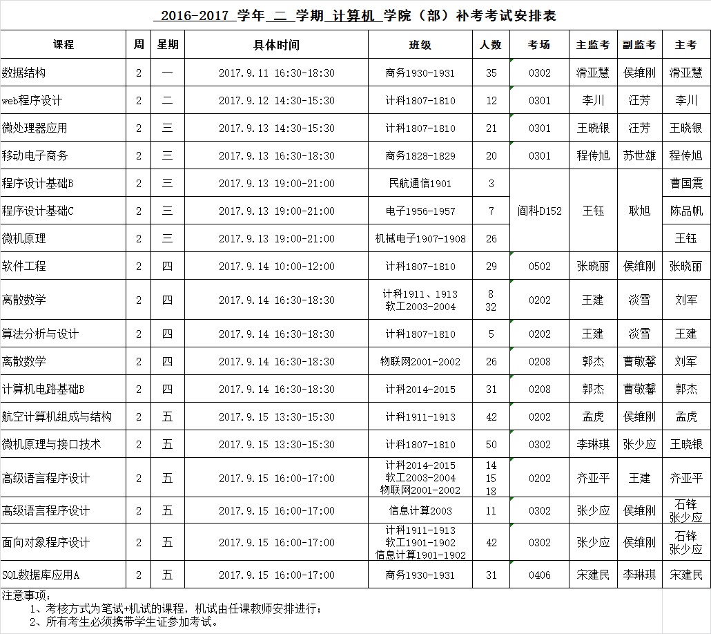 BB贝博的官方网站2016-2017-2学期课程补考安排表