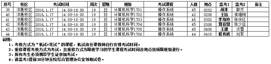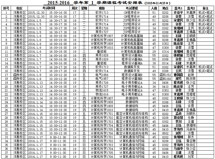 BB贝博的官方网站2015-2016-1学期期末考试安排表(14周之后)