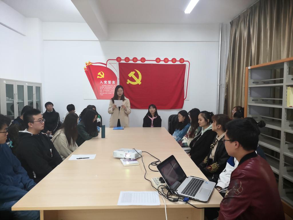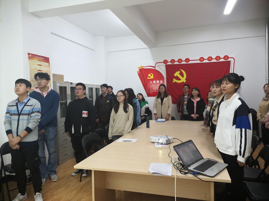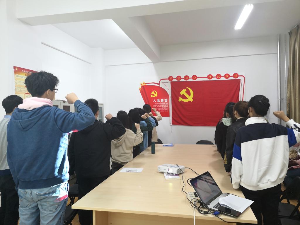 10月31日,BB贝博的官方网站学生党支部于三号公寓一楼党团活动室举行了预备党员入党宣誓仪式。十三名预备党员、学生正式党员代表和积极分子代表参加了此次活动,仪式由学生党员贾帅主持。