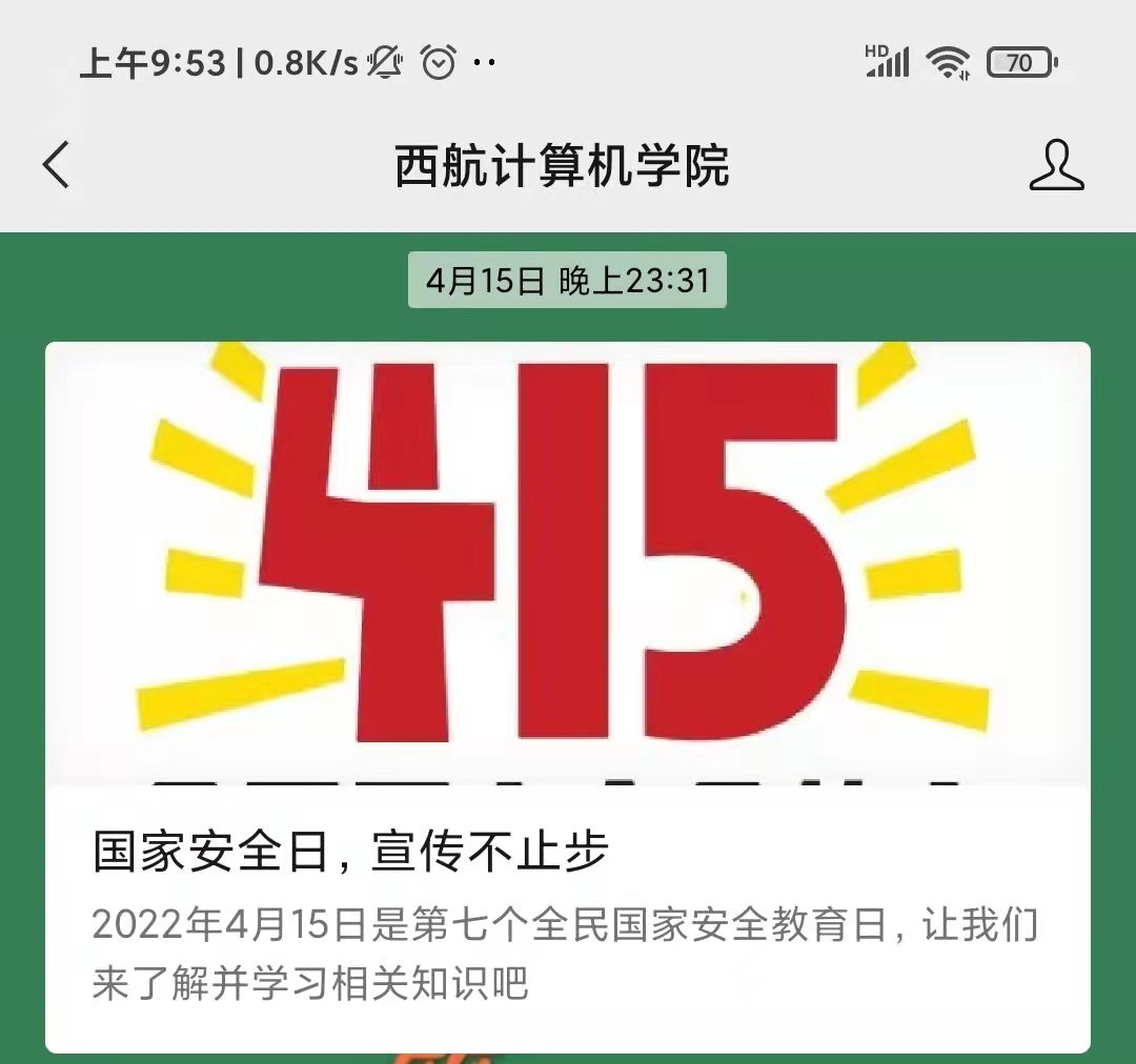 此前,BB贝博的官方网站党总支已通过微信公众号等推送了多期国家安全法律法规基本知识和新时代国家安全取得的成就等内容,有针对性地做好国家安全宣传工作。接下来,还将组织师生积极参与全民国家安全教育日专项答题等线上宣传教育活动,有效引导师生爱国、励志、求真、力行,切实筑牢总体国家安全观。