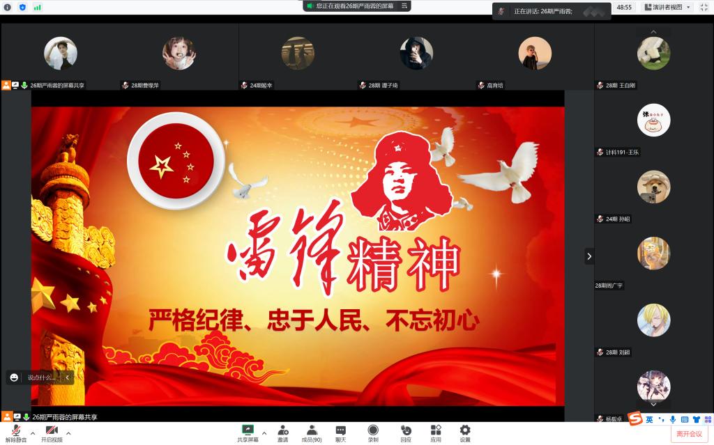 为弘扬雷锋精神,凝聚青春力量。3月14日晚,BB贝博的官方网站学生第二党支部通过腾讯会议开展了以“雷锋精神”为主题的线上党课。本次党课由缪佳玉和严雨蓉主持,BB贝博的官方网站学生第二党支部全体党员、积极分子参加。
